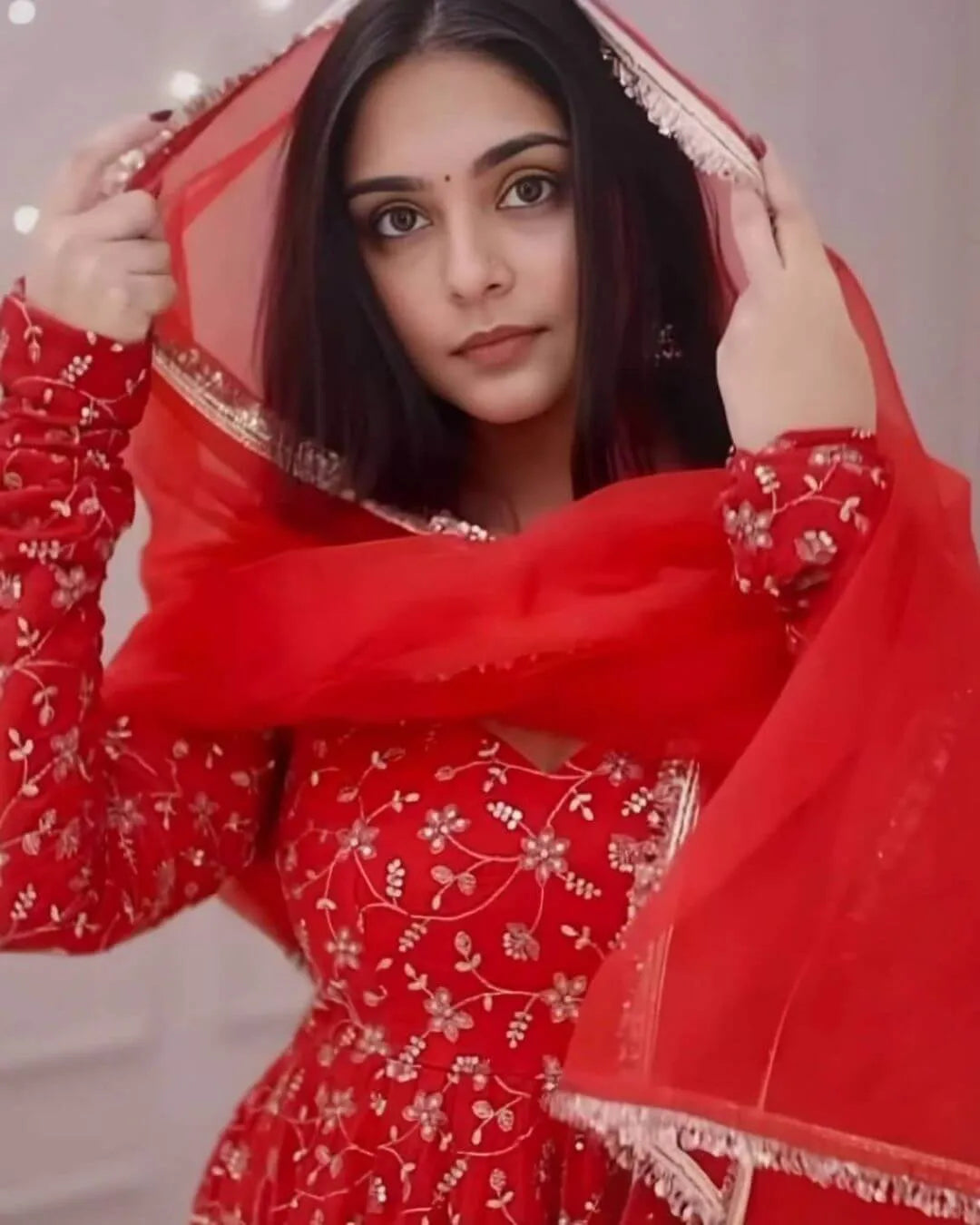 For a complete festive look, accessorize this red Anarkali gown party wear set with traditional gold jewelry like statement earrings and bangles. Add a pair of embellished heels or juttis to elevate your style. This stunning outfit is an ideal choice for weddings, sangeet ceremonies, or special festive occasions.